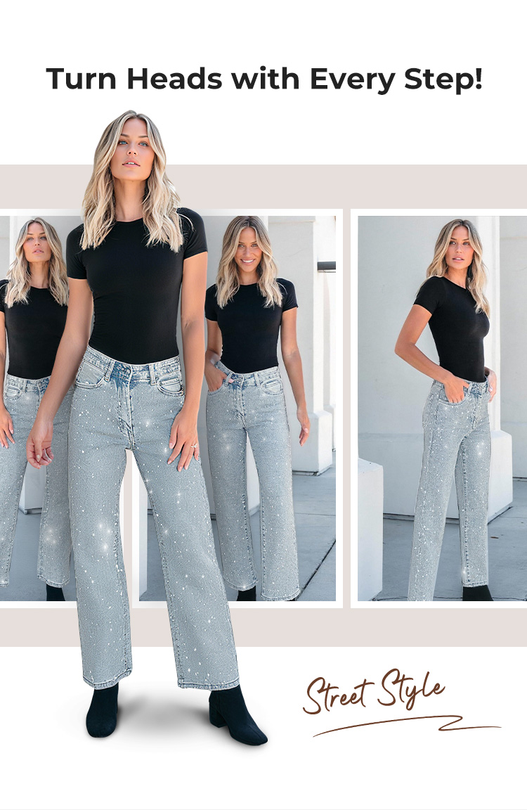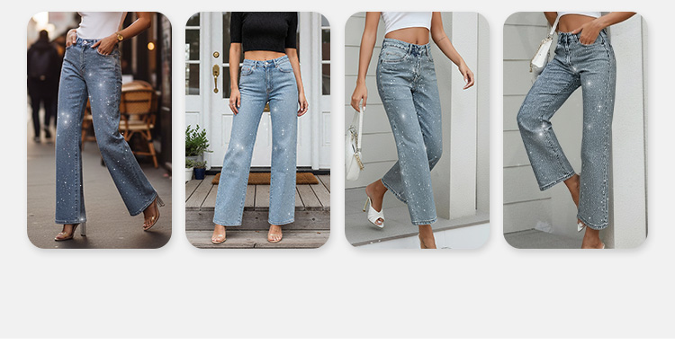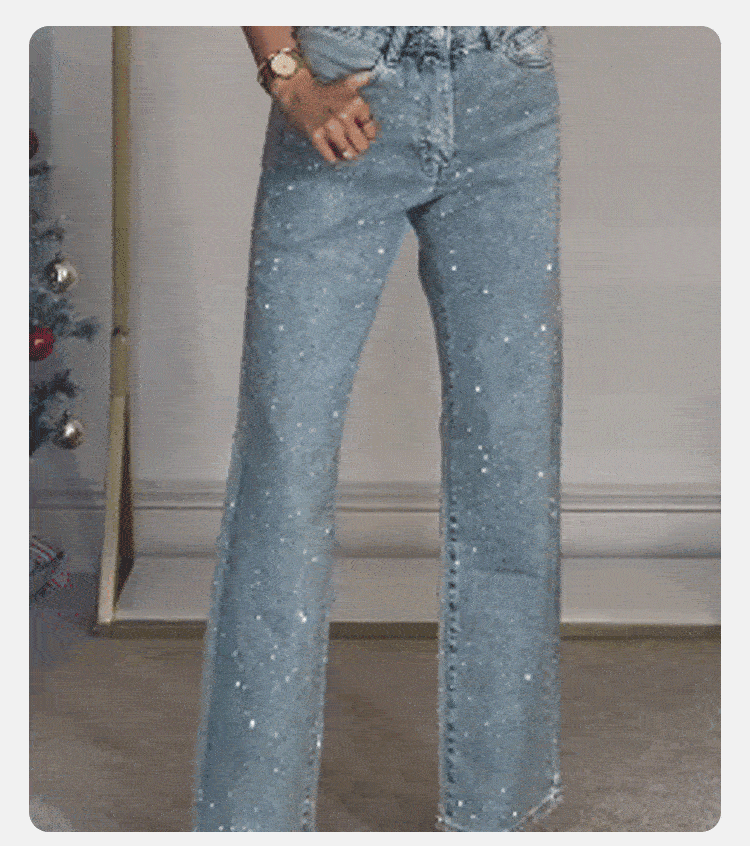 Mobaya | Rhinestone-Embellished Straight-Leg Jeans